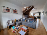 Cette confortable maison offre d'agréables prestations : un agréable salon - séjour, une belle cuisine ouverte aménagée et équipée qui donne accès à une terrasse et au jardin.