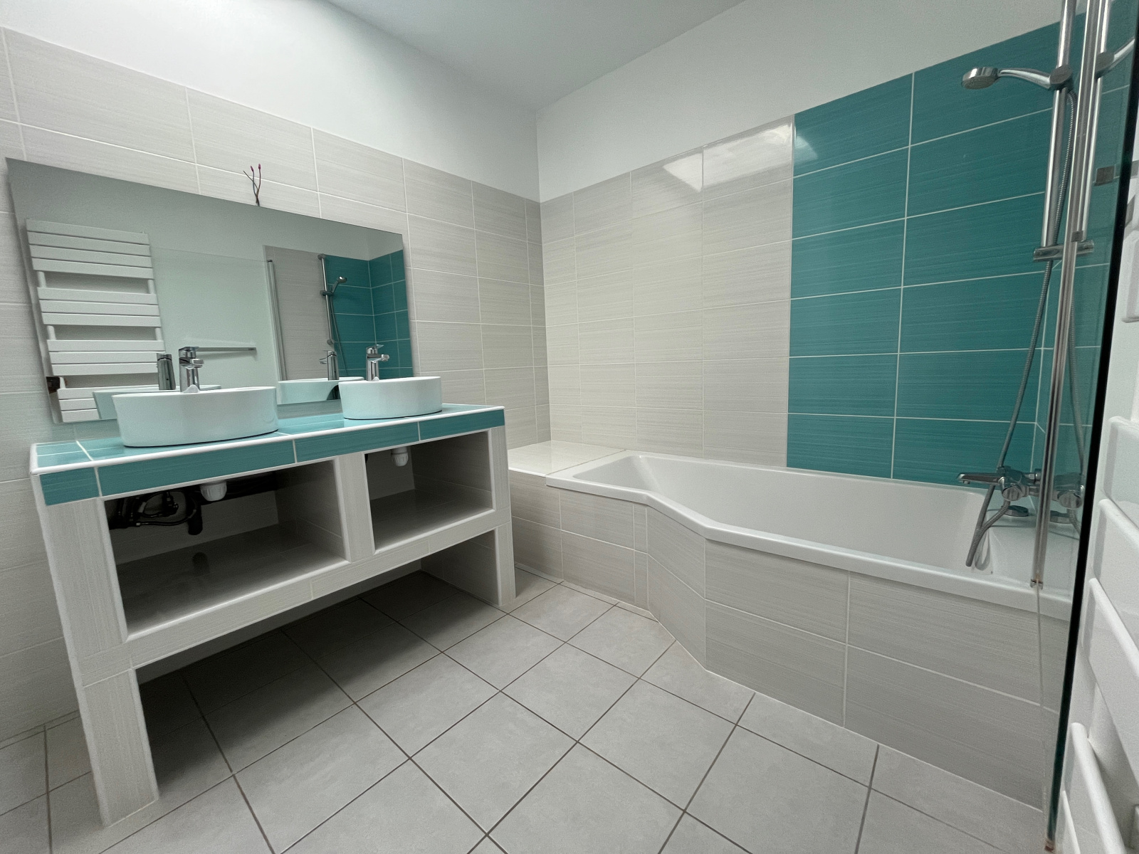 Grande salle de bain familiale, élégante et fonctionnelle