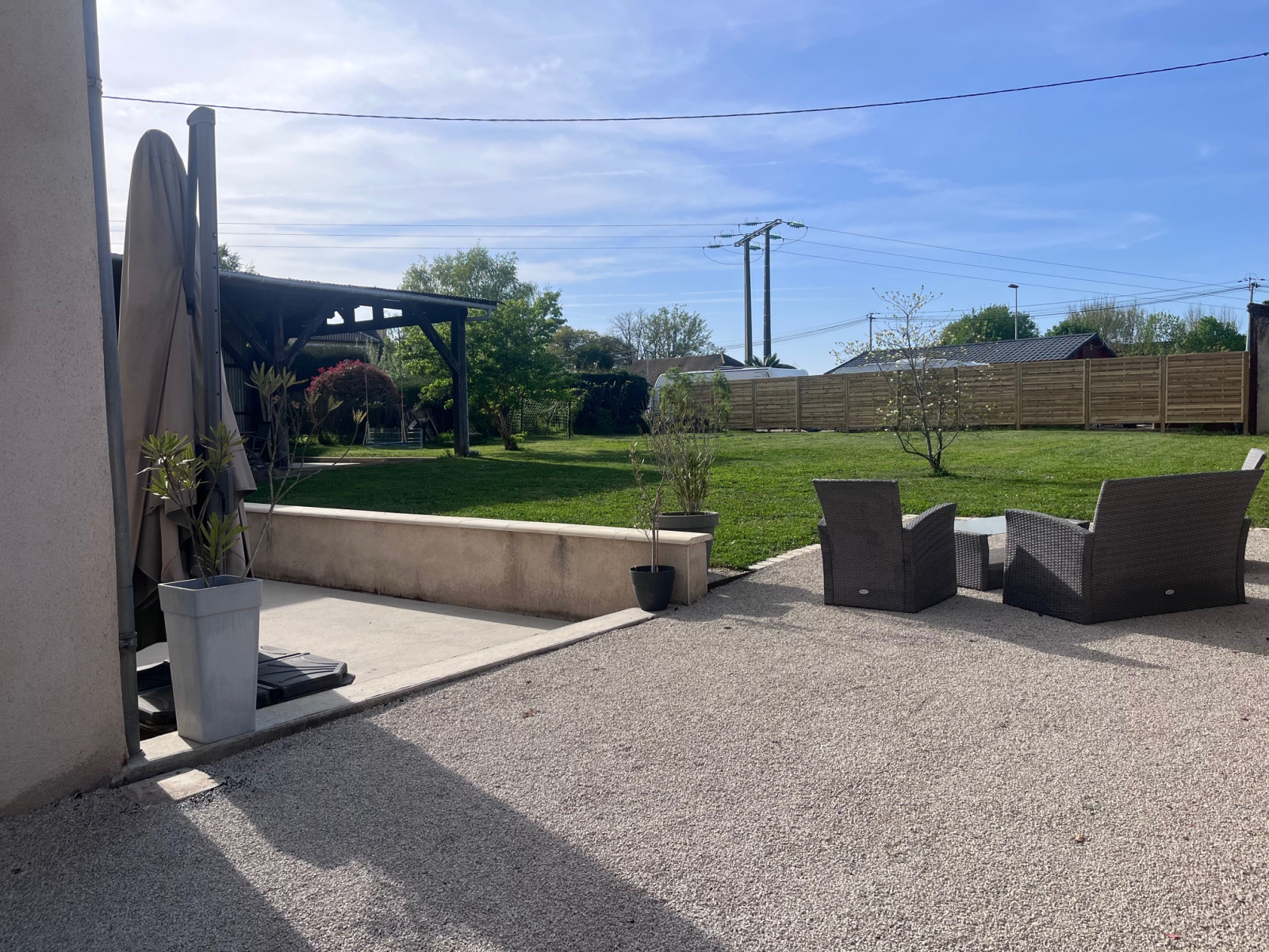 Le terrain, entièrement clôturé, est conçu pour profiter pleinement du calme et de la confidentialité :